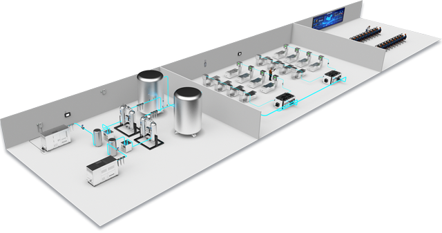 运用工业物联网技术、气体流量传感器技术及人工智能(AI)能源优化计算技术采集、分析空压机和气体管网能效数据,来实现工厂压缩空气能效的精准测量与精益管理,这些数据包括流量、温度、压力、露点、电量等测量数据以及空压机、干燥机等设备的运行数据。